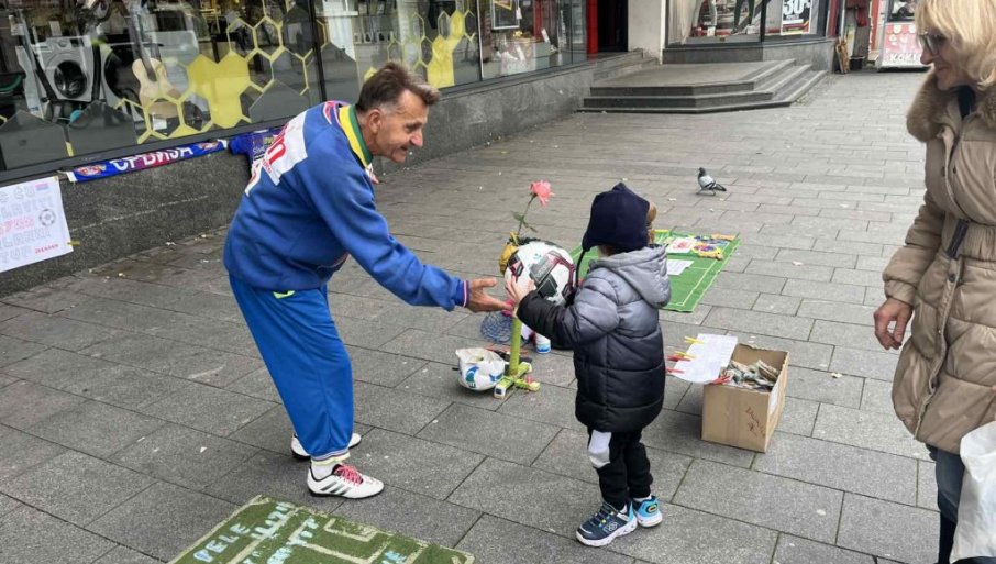 ЈУБИЛАРНИ, 3.700-ти јавни наступ у жонглирању фудбалском лоптом, 77-годишњи Славко Анђел из Зрењанина обележио је са најмлађим другарима, децом, за које је припремио и поделио 370 чоколадних бананица.
