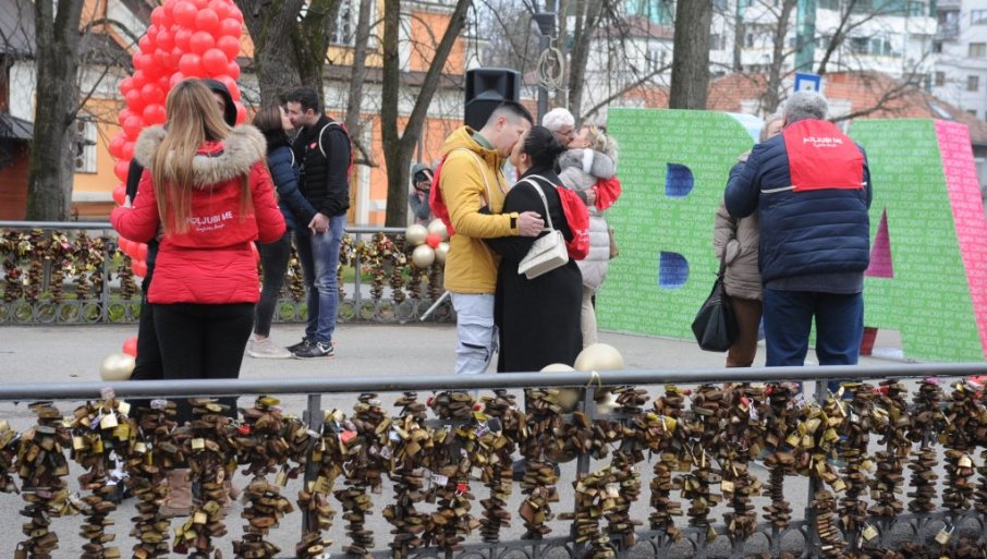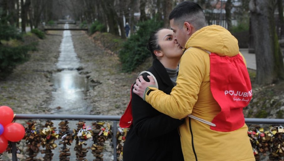ПОЉУПЦИ НА МОСТУ ЉУБАВИ: У Врњачкој Бањи на Дан заљубљених одржано традиционално такмичење (ФОТО)