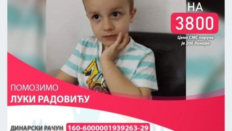 А, за новчану помоћ Луки Радовићу доступни су и рачуни: динарски 160-6000001939263-29, девизни 160-6000001939303-06 IBAN RS35160600000193930306 SWIFT/BIC DBDBRSBG, а могуће је послати и СМС са текстом 255 на 3800 (цена поруке је 200 динара).