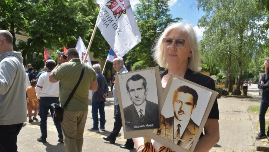 Кикинђанка Тања Јеличић Барбулов носила је портрете дедова Милета Иванића и Бранка Јеличића, партизанских бораца и антифашиста из Другог светског рата.