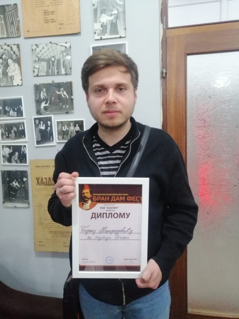 Глумица Марија Дебељаковић Стефановић добила је награду за глумицу вечери, за улогу сељанке, а глумац Бојан Милорадовић награду за глумца вечери, за улогу Обрада у представи “Омча“. Представа је рађена по тексту Пеђе Трајковића, а у режији Велимира Митровића.