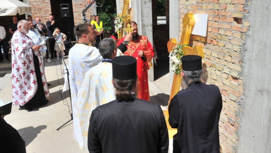 СИМБОЛИ ВЕРЕ, НАДЕ И ЗАЈЕДНИШТВА: Освештана крсна знамења на цркви у варошици Ушће код Краљева