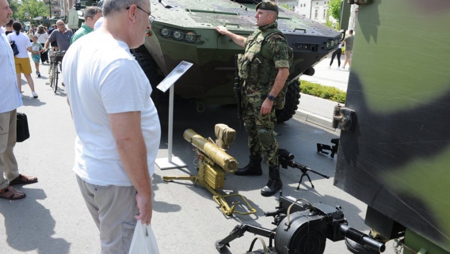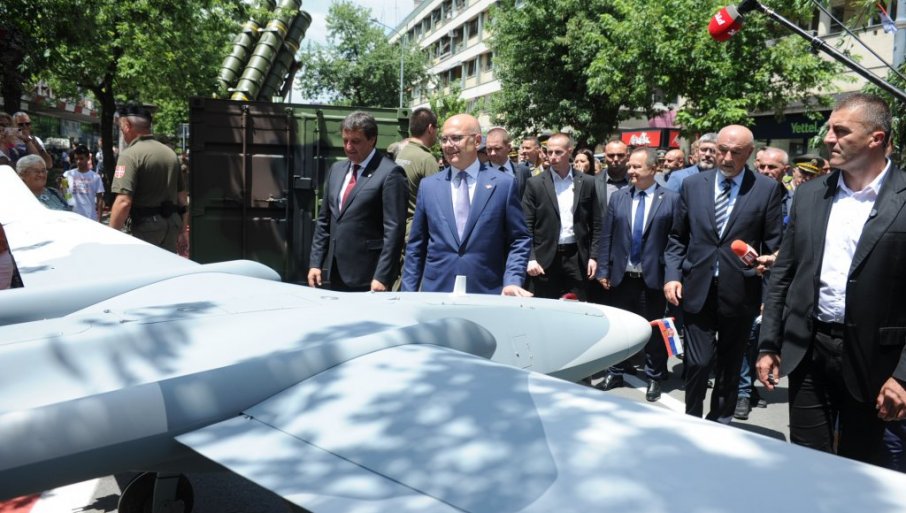 - Посебно смо поносни на развој артиљеријско-ракетних јединица, беспилотних летилица, односно дронова, као нечега што представља будућност за безбедност сваке државе, па тиме и Србије. Сада се види зашто је Србија, по одлуци тадашњег председника Владе, а данас председника Републике и врховног команданта, одлучила да улаже и чуве наменску и одбрамбену индустрију наше земље јер највећи део приказаних производа на овој смотри ми производимо. Не зависимо ни од кога, него смо довољно аутономни да све ово произведемо и пре свега испоручимо Војсци Србије – нагласио је премијер Вучевић.