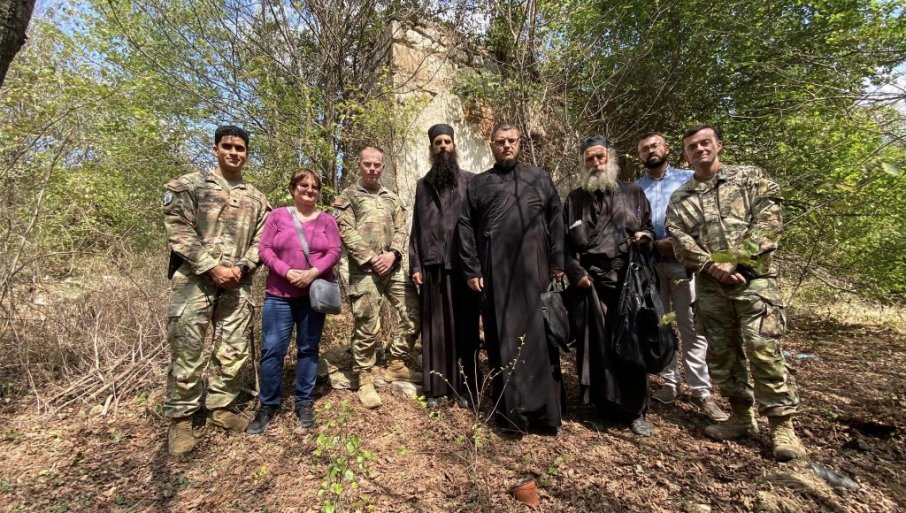 БОГОСЛУЖЕЊЕ У НЕКАДАШЊОЈ СВЕТИЊИ НА КОСОВУ И МЕТОХИЈИ: Монаштво и парох манастира Драгинац на месту где су '99 минирали цркву
