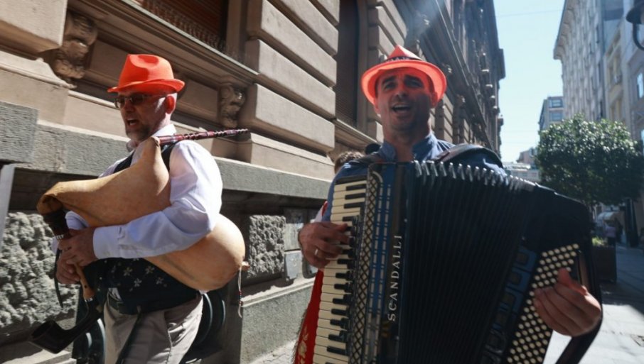 Скоро романтична сцена и диван неочкиван сусрет догодили су се данас у центру Београда, куда су се у Кнез Михаиловој улици, случајно сусрели гајдаш из Кикинде и непозната старија Београђанка. Он је био члан маскираног карневала деце из кикиндског вртића, који је у главном граду представљао манифестацију „Дани лудаје“.