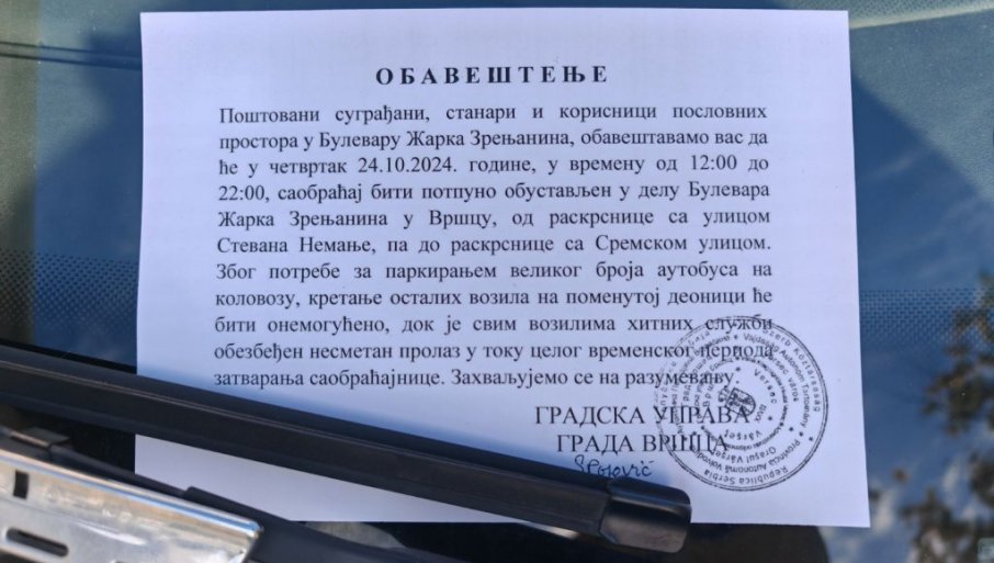 На летку, који је подељен становницима булевара или је остављен на паркираним аутомобилима, пише да ће кретање возила овом важном саобраћајницом бити онемогућено због потребе да се на коловозу паркира велики број аутобуса.