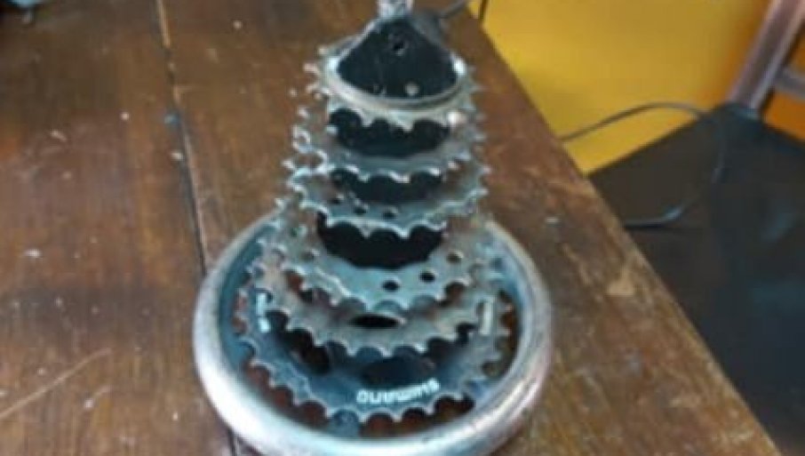 Прошле године јелка је била направљена од зупчаника мењача од бицикле, била је минијатурна и окретала се. У његову антикварницу свраћали су радознали Врањанци како би видели то "чудо од јелке".