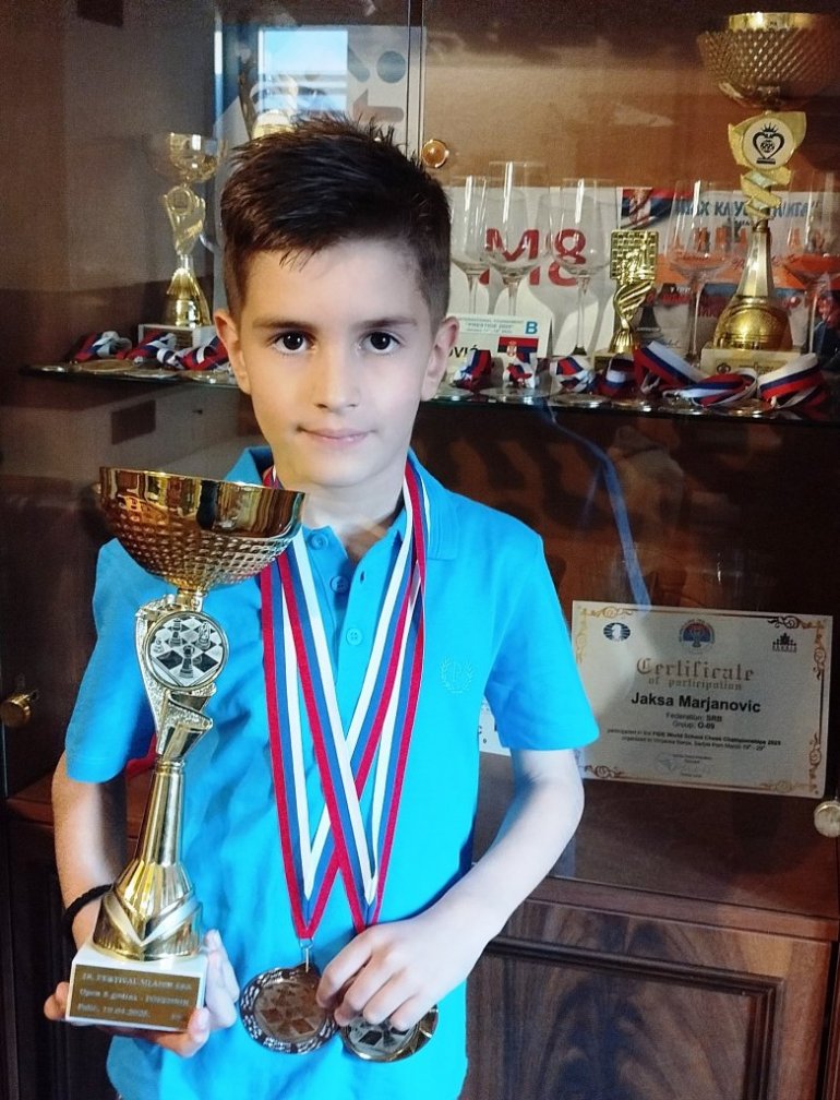 Данас је овај малишан бистрих очију, изузетне енергије и сјајне концентрације државни првак у шаху у конкуренцији дечака свог узраста - до осам година, а освајањем те титуле на недавном "Фестивалу младих" Шаховског савеза Србије (ШСС) постао је и члан кадетске репрезентације.