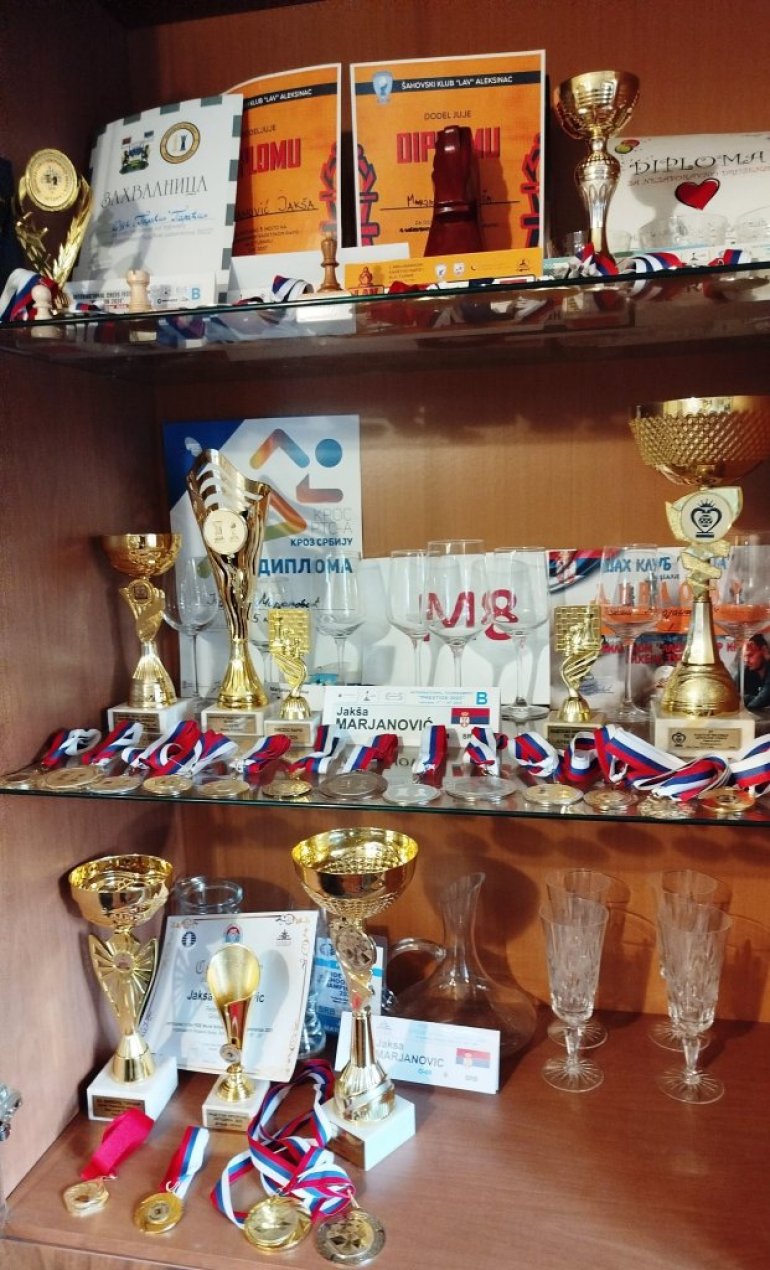 - Нажалост, немам са ким да га играм јер су у улици све девојчице. А немам ни много времена да млађег брата учим шаху мада би тата и мама то волели - осмехује нам се дечак, док нам показује у регалу на десетине пехара и медаља које је до сада освојио. Најдражи му је овај последњи, шампионски.