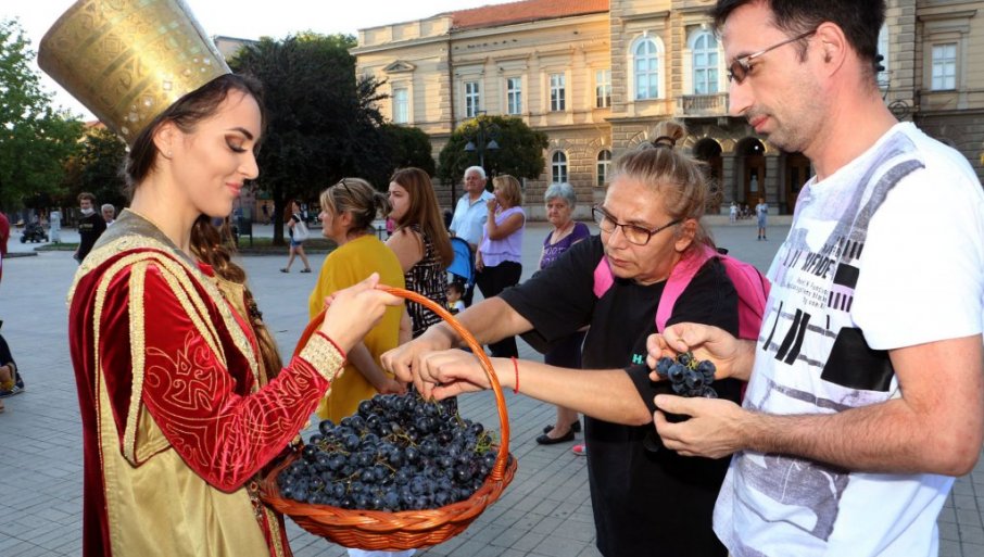 Окупљени пролазници могли су и да се засладе грожђем, које су из плетених корпи делиле девојке у костимима “девојке Смедеревке и Јерине”.