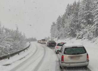 Према речима возача који се налазе у километарској колони, утабаног снега има више од 5 центиметара на коловозу.