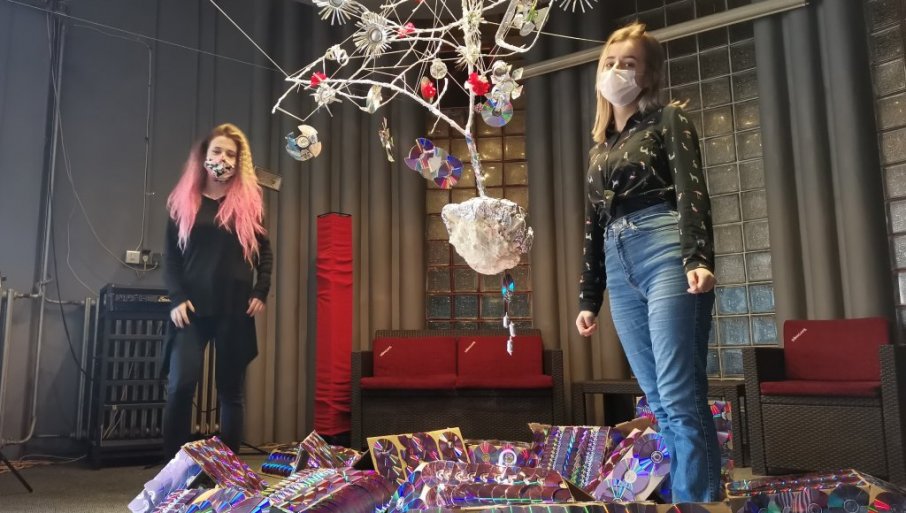 ГРАНЕ ОД КОНЗЕРВИ, ЛИШЋЕ ОД КОМАДИЋА СТАКЛА: Погледајте "Дрво живота" које су направиле две студенткиње из Крушевца (ФОТО)