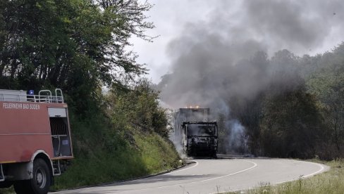 КАМИОН који је превозио плинске боце запалио се код Плавне. Пожар је изазвао и детонације боца. На терену су припадници Ватрогасно спасилачког одељења и неготинске полиције. Увиђај је у току.