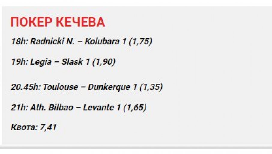 Редакција Типа је поново погодила тикет дана са квотом 7,41.