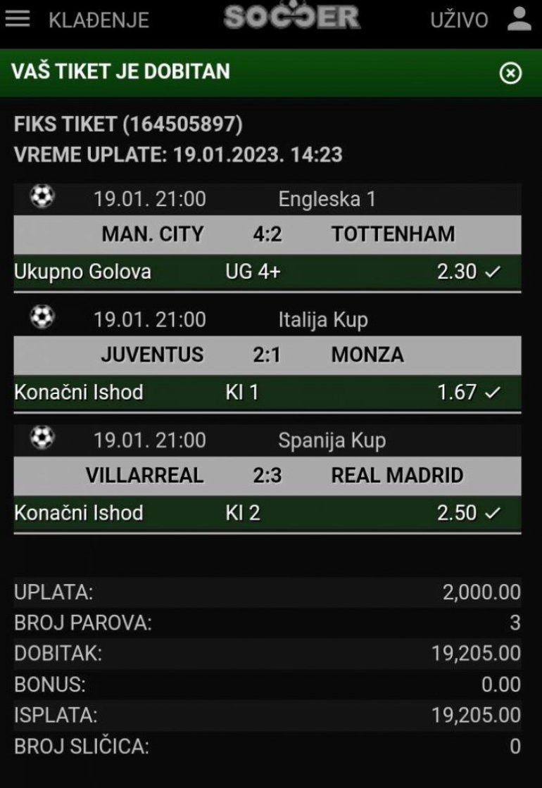 Поред тикета дана добитан је био и тикет на коме су само предлози са головима и који је свима који су преписали донео сјајну квоту 10,65 и тај тикет можете погледати ОВДЕ.