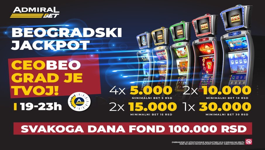 Наиме, кладионица АдмиралБет је спремила Београдски џекпот, који нам доноси најављену кишу џекпотова у периоду од 15. маја до 23. јуна. Киша ће падати у АдмиралБет локалима у Београду, сваког дана од 19 часова до 23 часа, када ће пасти 10 џекпотова укупне вредности 100.000 динара. Да, добро сте прочитали, месец и по дана ће падати 100.000 динара џекпотова сваког дана, а како бисте осетили део пљуска потребно је да свратите до свог омиљеног АдмиралБет локала.