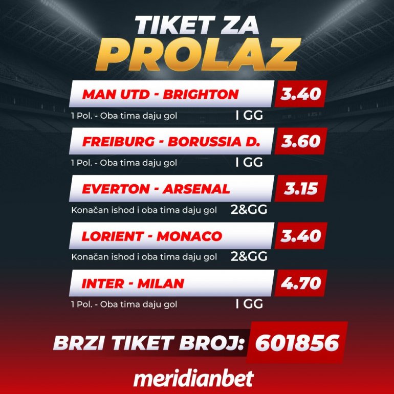 Почнимо од Премијер лиге, где Манчестер јунајтед дочекује екипу Брајтона. Очекује се нападачка игра с обе стране, а квота од 3.40 за опцију "оба тима дају гол у првом полувремену (1ГГ)" звучи примамљиво.