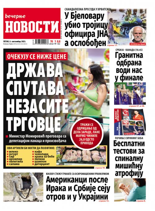 Вечерње новости - штампано издање za 08.09.2023.