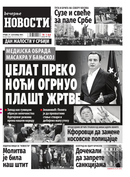 Вечерње новости - штампано издање za 27.09.2023.
