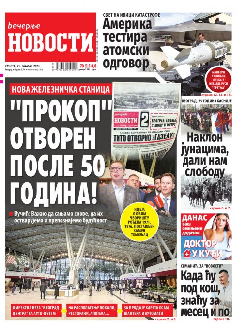 Вечерње новости - штампано издање za 21.10.2023.