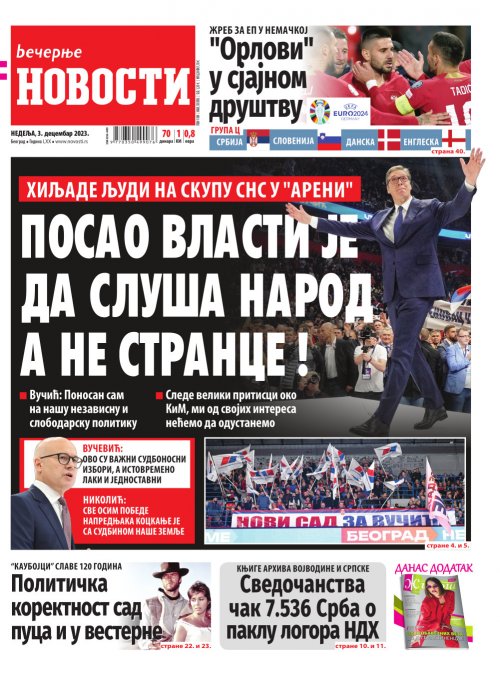 Вечерње новости - штампано издање za 03.12.2023.
