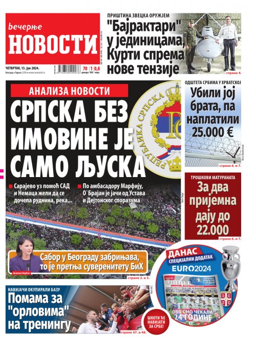 Вечерње новости - штампано издање za 13.06.2024.