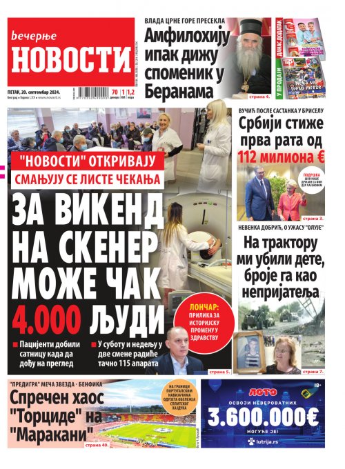 Вечерње новости - штампано издање za 20.09.2024.
