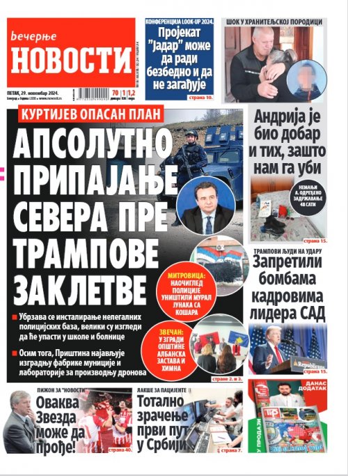 Вечерње новости - штампано издање za 29.11.2024.