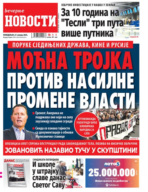 Вечерње новости - штампано издање za 27.01.2025.