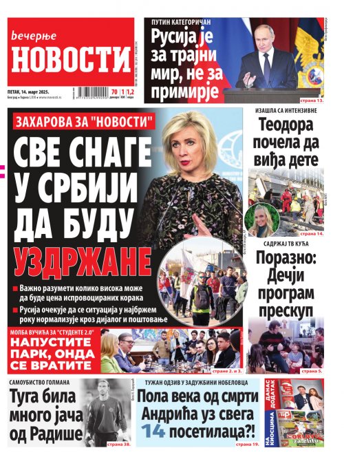 Вечерње новости - штампано издање za 14.03.2025.