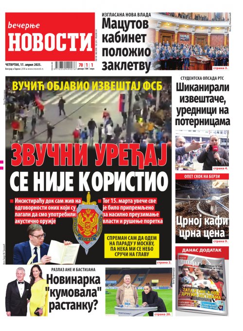 Вечерње новости - штампано издање za 17.04.2025.