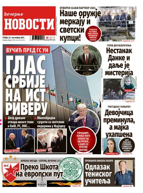 Вечерње новости - штампано издање za 24.09.2025.