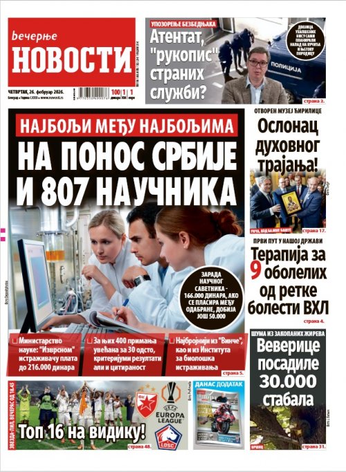 Вечерње новости - штампано издање za 26.02.2026.