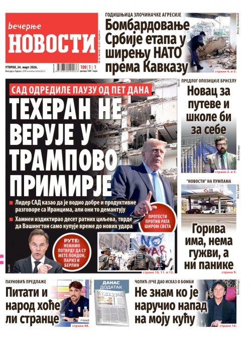 Вечерње новости - штампано издање za 24.03.2026.