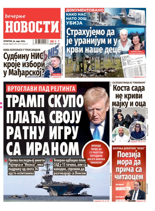 Вечерње новости - штампано издање za 26.03.2026.