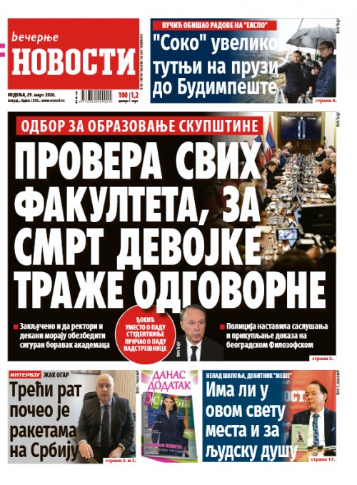 Вечерње новости - штампано издање za 29.03.2026.