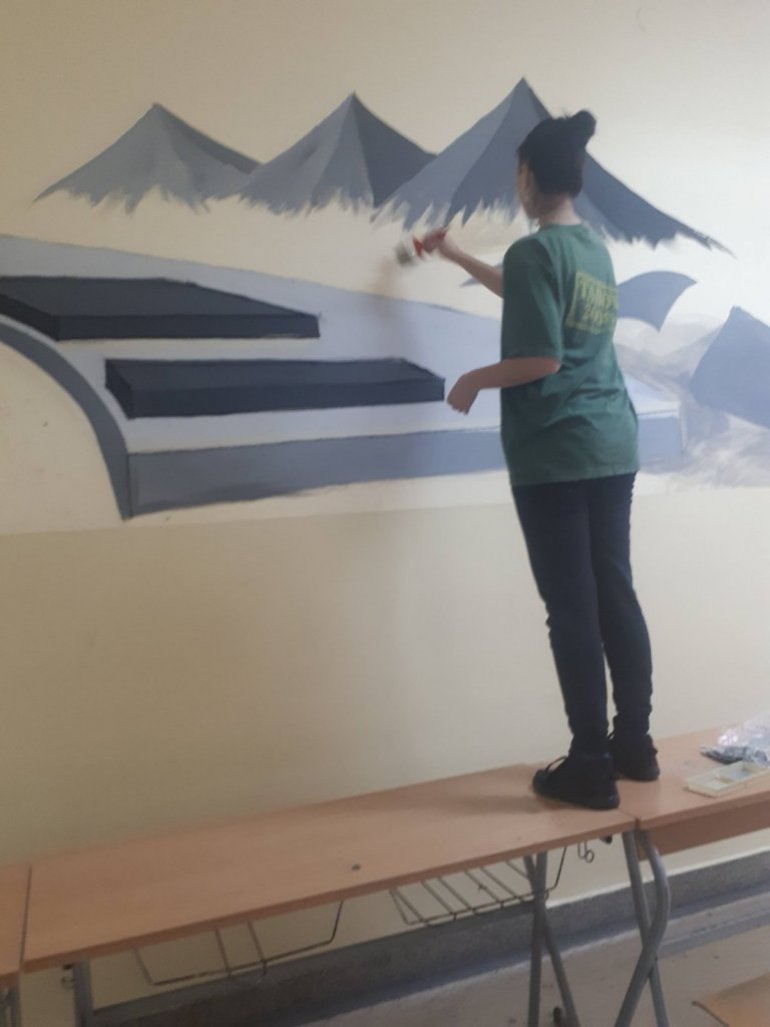 - Највише смо радили лети, када су то епидемиолошке околности дозвољавале. Ђаци су кроз мурале илустровали часове хемије, математике, биологије, српског језика. У сиво време епидемије мислим да су добили ведар простор, који инспирише.