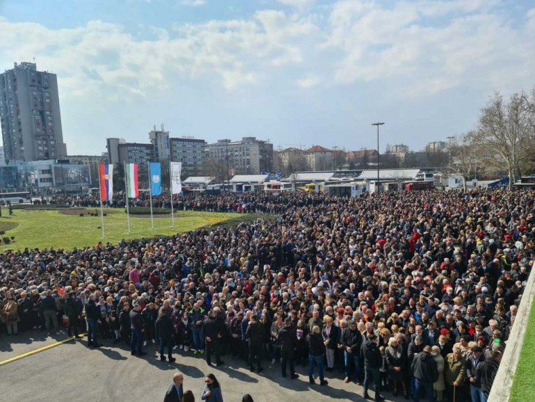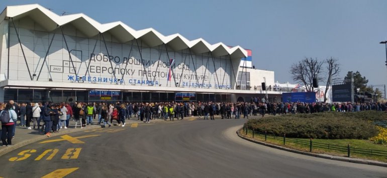 НОВОСАЂАНИ се већ окупљају пред Железничком станицом у Новом Саду.