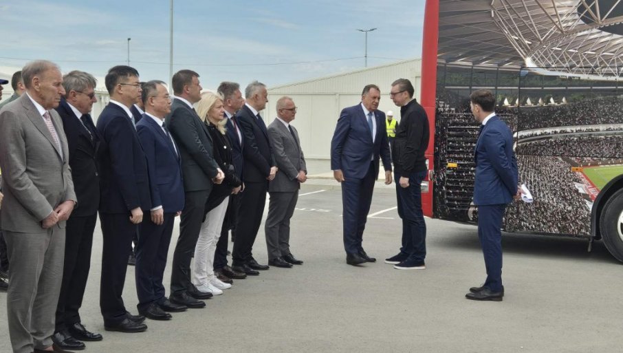Председник Вучић је стигао и кренули су у обилазак отвореник аутобусом. Вучић се обратио на почетку Додику: