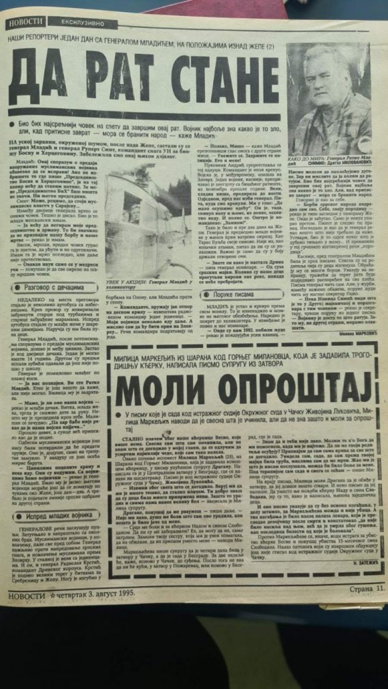 РЕПОРТЕР "Новости" Милена Марковић 2. август 1995. године провела је дан са генералом Ратком Младићем на Жепи.