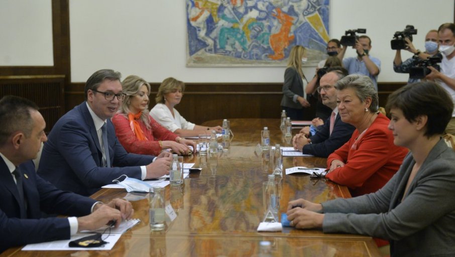 ВУЧИЋ НА ПОТПИСИВАЊУ УГОВОРА СА БРИСЕЛОМ: Председник Србије са комесарком ЕУ о управљању миграцијама (ВИДЕО)