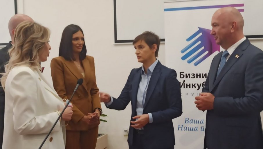 ПРЕМИЈЕРКА Ана Брнабић, министарка за европске интеграције Јадранка Јоксимовић и министар без портфеља Ненад Поповић присуствују презентацији пројекта доградње и опремања Регионалног индустријског технолошког парка у Бизнис инкубатору у Крушевцу.