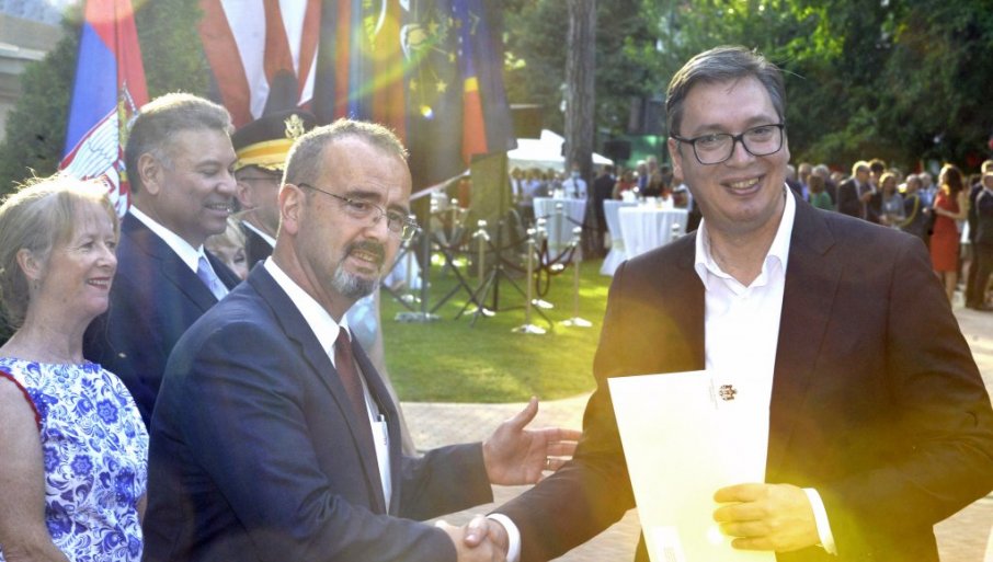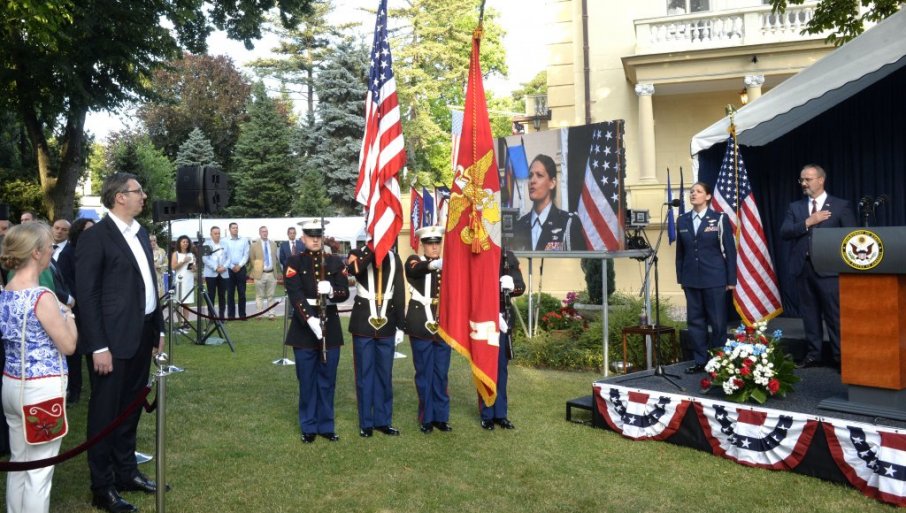 - Сваког 4. јула грађани САД славе сећање на борбу за слободу и самосталност, крунисану у Декларацији о независности, усвојеној пре 245 година. Ми, у Србији, делимо универзалне вредности, оличене у Декларацији, а то је да су ''сви људи створени једнаки и да је њихово неотуђиво право - право на живот, слободу и тежњу ка срећи - навео је Вучић у честитки коју је уручио данас на пријему у америчкој резиденцији у Београду амбасадору Ентонију Годфрију.