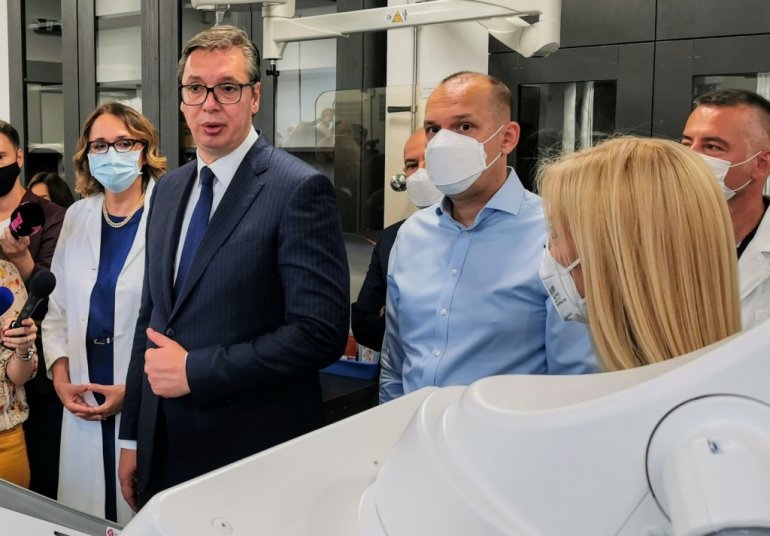 - Нова машина вредна је милион и 200 хиљада евра, ово ће у многоме помоћи у лечењу пацијената. Честитам свим лекарима на труду и раду. Ми настављамо са опремањем болница. Ову машину, најновију, нема ниједна болница у земљама на простору бивше Југославије. Имају је само болнице у Бечу и Истанбулу. Захваљујем се медицинским радницима и надам се да ћемо до краја године моћи да их обрадујемо и новим повећањем плата - рекао је Вучић.
