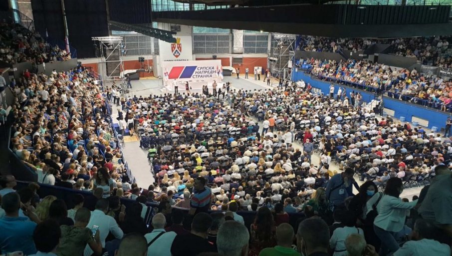ВУЧИЋ У ПУНОМ "СПЕНСУ": Обраћањем председника почео састанак напредњака (ВИДЕО)