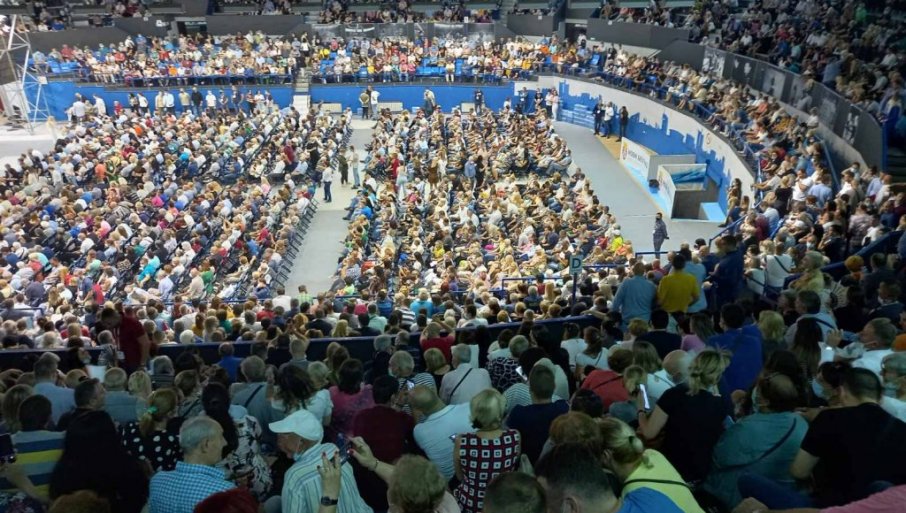 Састанак је почео у 18.00 сати, а уочи почетка Хала спортова на Новом Београду била је потпуно попуњена.