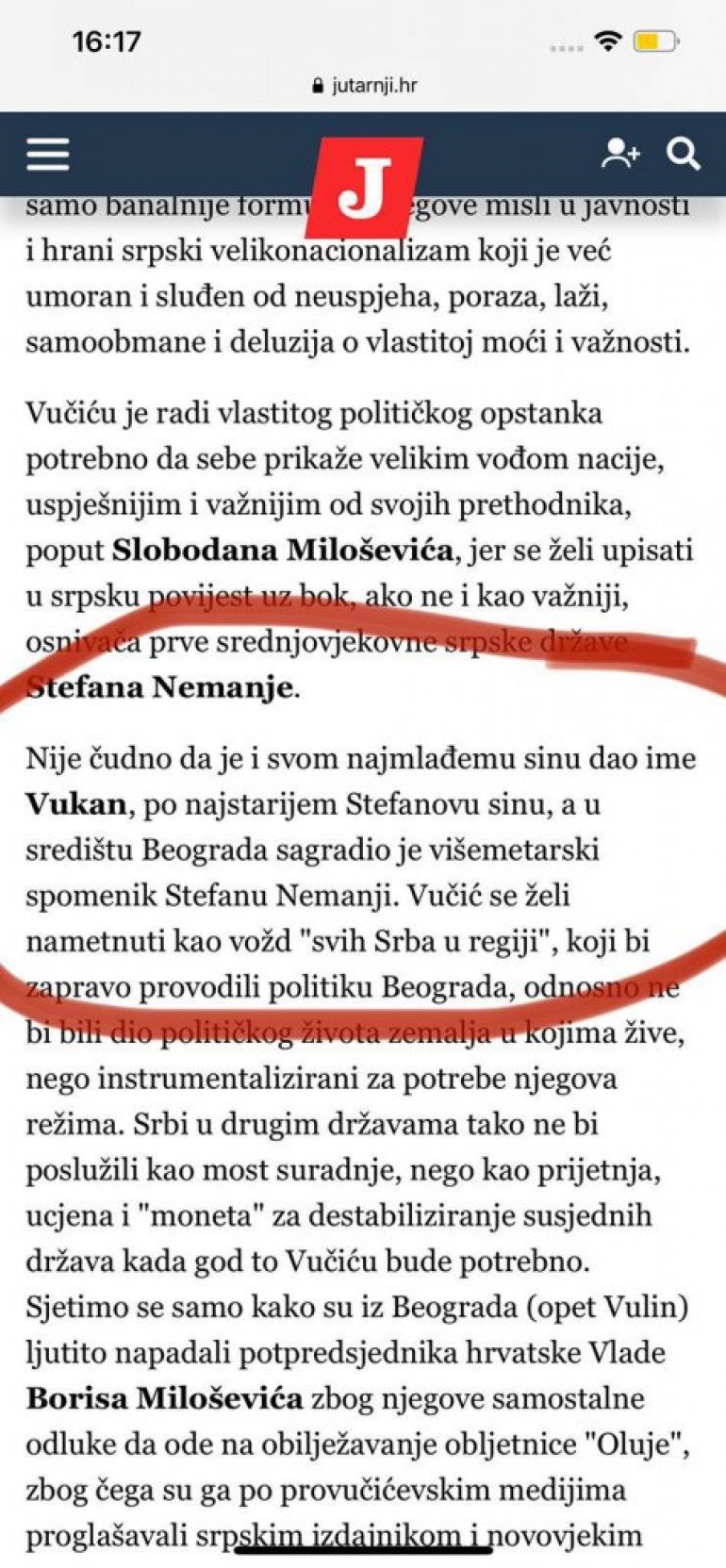 Након овога се као главни текст на Јутарњем појави и напад на Србију и Вучића - у овом тексту Јутарњи тврди да смо највећи разбојници на Балкану.