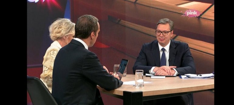 ПРЕДСЕДНИК Србије Александар Вучић гостовао је вечерас на Телевизији Пинк, у специјалној емисији "Интервју", где је одговарао на све нападе и оптужбе и говорио о најважнијим темама везаним за Србију.