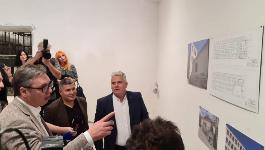 Председник Вучић стигао је у Прокупље, где тренутно обилази радове на реконструкцији зграде Гимназије и Средње медицинске школе „Др Алекса Савић“.
