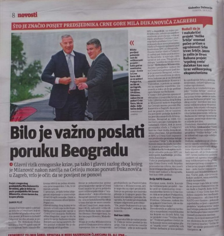 У Јутарњем је изашао текст са насловом "Како је Вучић Србију претворио у Хрватску из пивских реклама", у Вечерњем су изашла чак два "Вучић позвао Хрвате да се не цијепе и не шаљу дjецу у школе у којима се не учи ћирилица. Мало тко је очекивао да ће се догодити ово..." и "Вучић као извршитељ политичког тестамента Ангеле Меркел о уласку остатка Балкана у ЕУ".